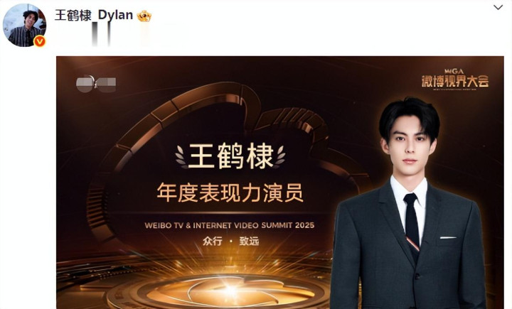 今年11月,王鹤棣在微博视界大会上斩获“年度表现力演员”奖项。